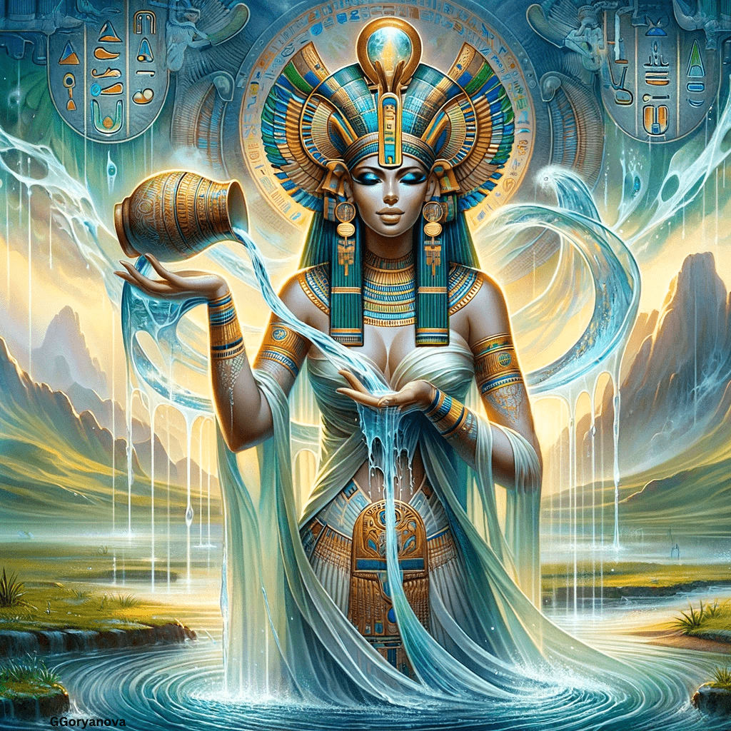 The symbolism and significance of the goddess extend to various aspects of Egyptian culture, especially in agriculture and fertility rituals. She is invoked in prayers and offerings to ensure a bountiful harvest and a continuous abundance of water for sustenance.