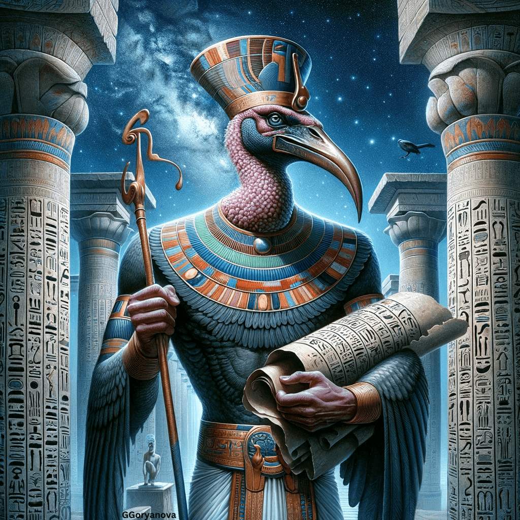 As a mediator between gods and mortals, he plays a central role in the "Weighing of the Heart" ceremony, recording the outcome of the soul's judgment. His wisdom extends to the realms of science, magic, and language, making him a patron of scholars, sorcerers, and scribes.