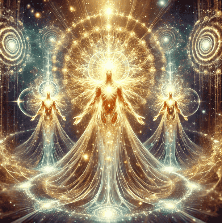 Тяхното присъствие излъчва огромна божествена сила, често се появяват с ореоли, свещени геометрични шарки и огнени златни аури, символизиращи връзката им с най-висшите сфери на божественото творение.