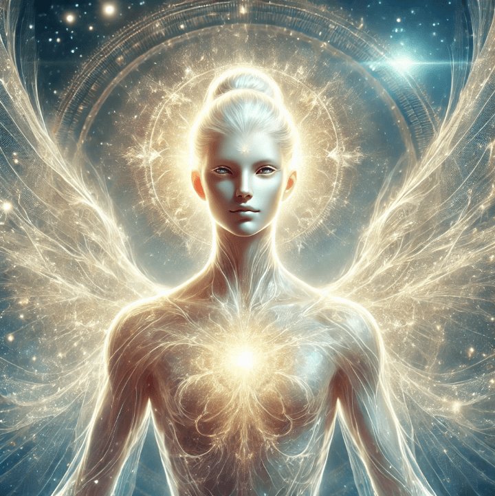 - Величествени крилати небесни същества – Извисяващи се на ръст със златисто-бели луминисцентни тела, многоизмерни крила и лъчисти ореоли от божествена енергия