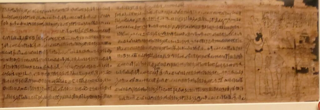 The 'Ptah-Sokar-Oziris' typology represents a mummified funerary deity as a symbol of life after death and is a characteristic element of the funerary rituals of upper-class individuals in the Late Period. The scroll contains 5 pages in hieratic type with chapters from the Book of the Dead.